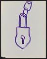 An umbrella shape with facial features, raindrop shapes above and a chain below
