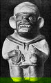 M0010563: Earthenware in the shape of the spirit of coca holding a drinking vessel and calabash