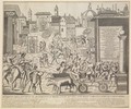 Torture and execution of alleged plague carriers in Milan, 1630. Engraving.
