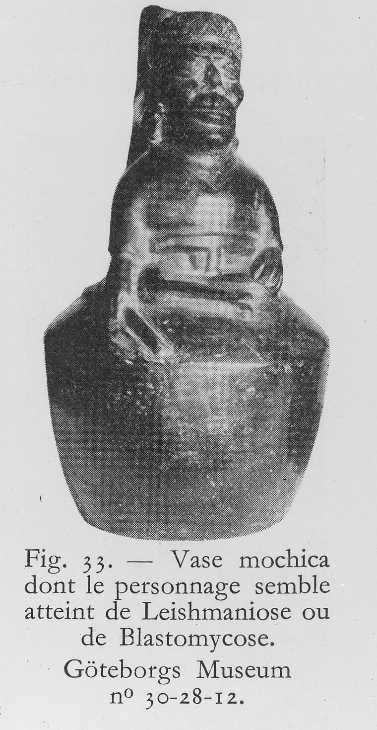 M0016566: Peruvian pot in the form of a figure with either leishmaniasis or blastomycosis. In copyright. Source: Wellcome Collection.