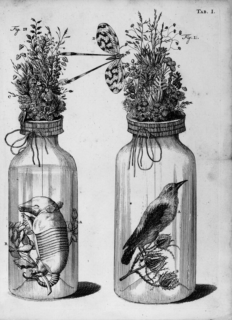 M0016626: Botanical and zoological preparations including the foetus of an armadillo, 1710. Public Domain Mark. Source: Wellcome Collection.